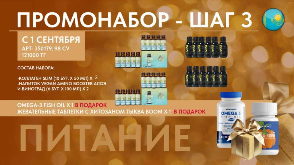 05 Сен Новости УКРЕПЛЯЙ ЗДОРОВЬЕ – СОБИРАЙ ПОДАРКИ! Опубликовано Асем Конарбаева 05-09-2024 ШАГ 3. Omega-3 Fish Oil В ПОДАРОК! Жевательные таблетки с хитозаном Тыква Boom В ПОДАРОК! Продолжить чтение