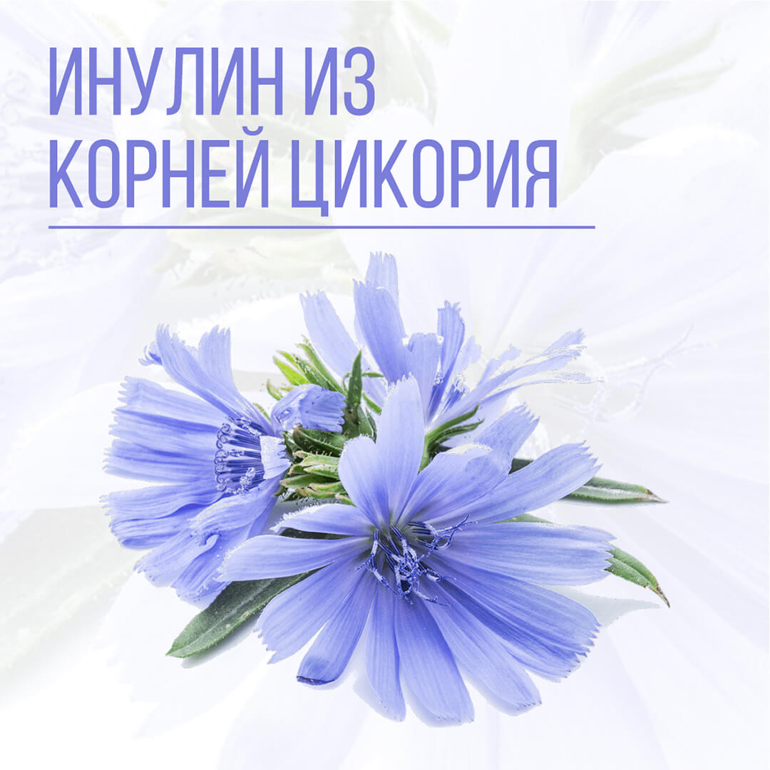 Инулин цикория — растворимые пищевые волокна, полученные естественной экстракцией из корней цикория. Инулин не усваивается в желудке, доходит до кишечника в неизменном виде, улучшая его работу, становясь питательной средой для полезных бактерий. Стоит отметить, что инулин способствует росту собственной уникальной микрофлоры кишечника.